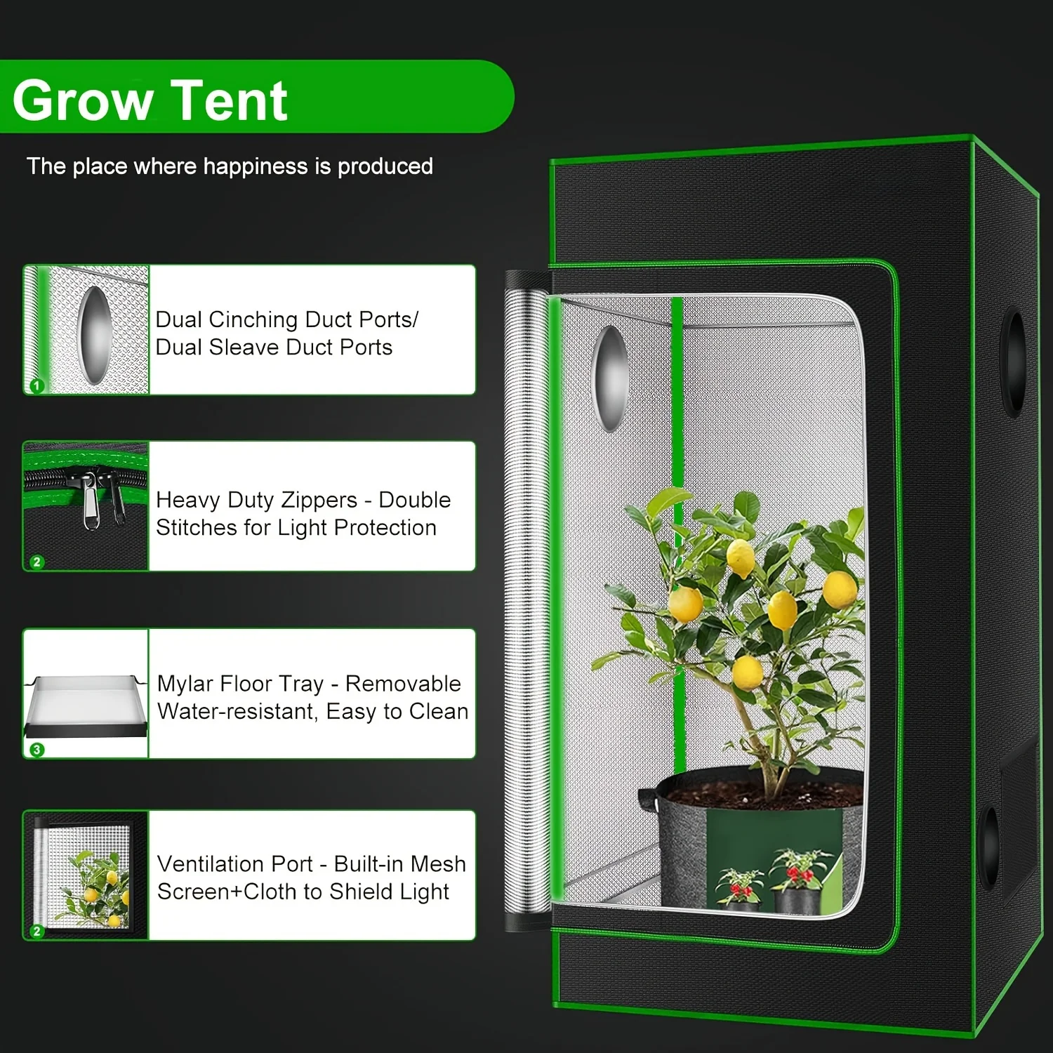 【Multiple Uses】: This indoor plant tent with viewing window and floor tray is suitable for growing plants, flowers, fruits and vegetables. Suitable for closets, basements, balconies and other places, no matter where you want to put this grow house indoors, you can do it easily.