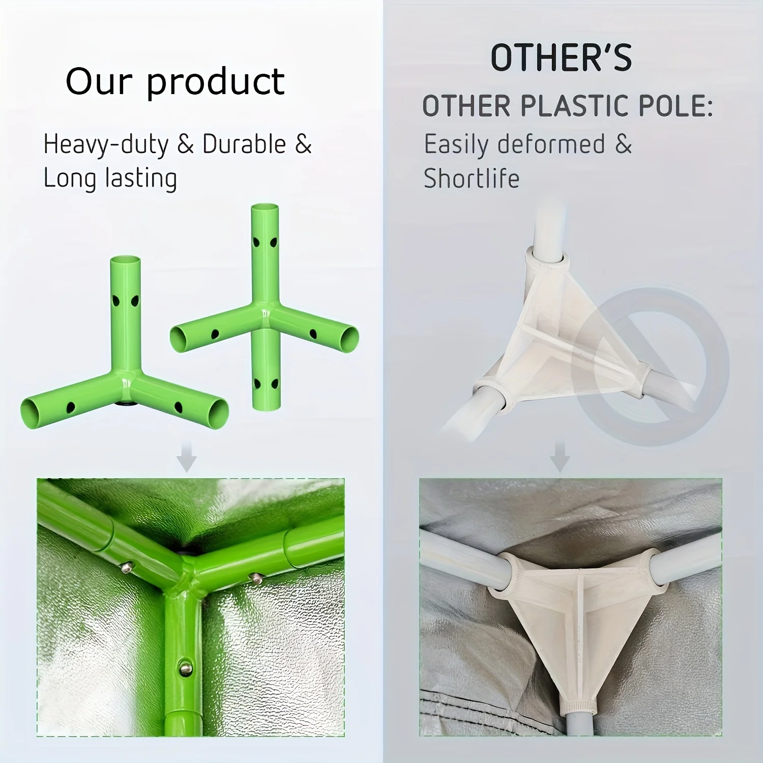 【High Quality】: This grow tent measures 16"x16"x48" and is lined with a highly reflective waterproof polyester film and 600D double-stitched canvas. It is perfectly light-proof and tear-resistant, and has excellent durability, safety and stability. It can withstand long-term use to ensure proper temperature and make plant healthy growth.