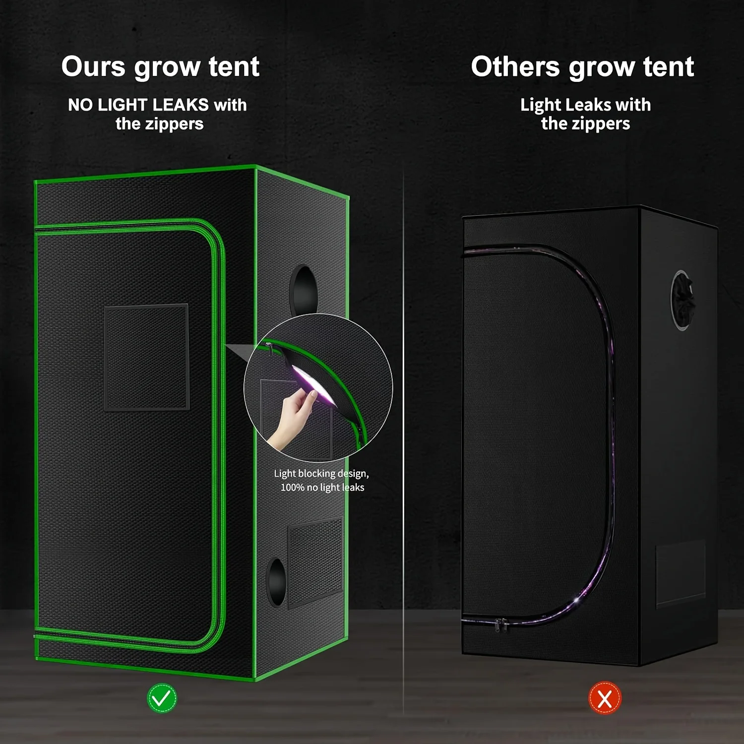 【Easy to operate】: Our indoor grow tents are equipped with a large heavy-duty zipper door and storage bag for you to easily put in/take out plants and store growing accessories, and the 2×2 grow tent design with double transparent observation windows allows you to easily observe the internal plant status of the grow tent at any time.
